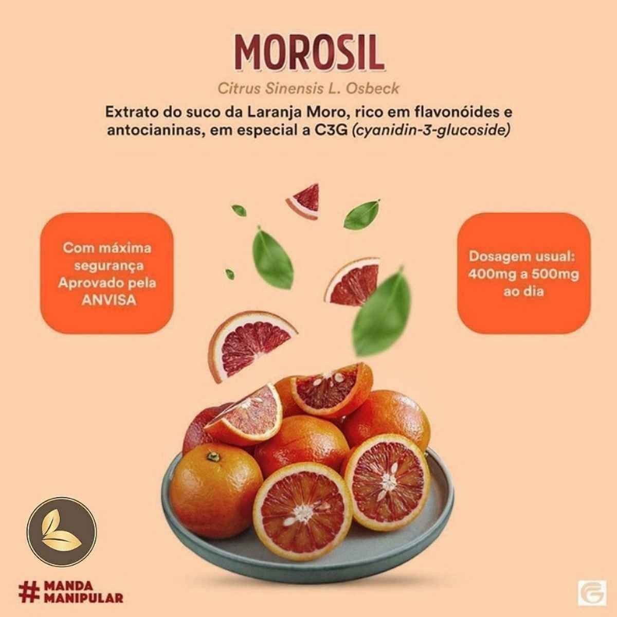 O Morosil® é um extrato padronizado da Laranja Moro (Citrus sinensis), cultivada exclusivamente na região da Sicília, Itália. Esse ativo natural é reconhecido por sua alta concentração de antocianinas, flavonoides, carotenoides e vitamina C, compostos bioativos que atuam diretamente no metabolismo de gorduras e no controle do peso corporal.